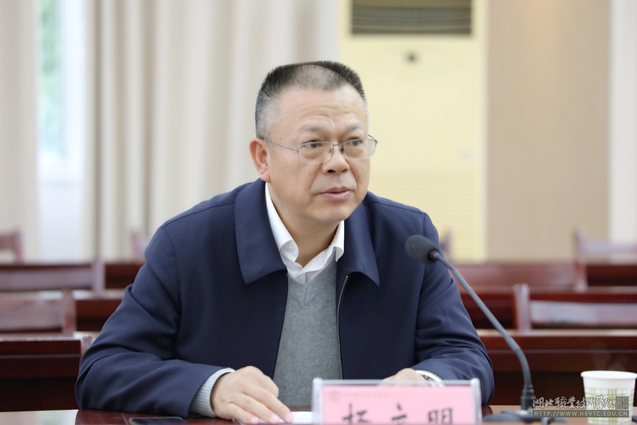 杨立明对专家组一行的到来表示热烈欢迎,并简要介绍了学校整体发展概况以及荆楚工匠学院的运行机制与建设成效。