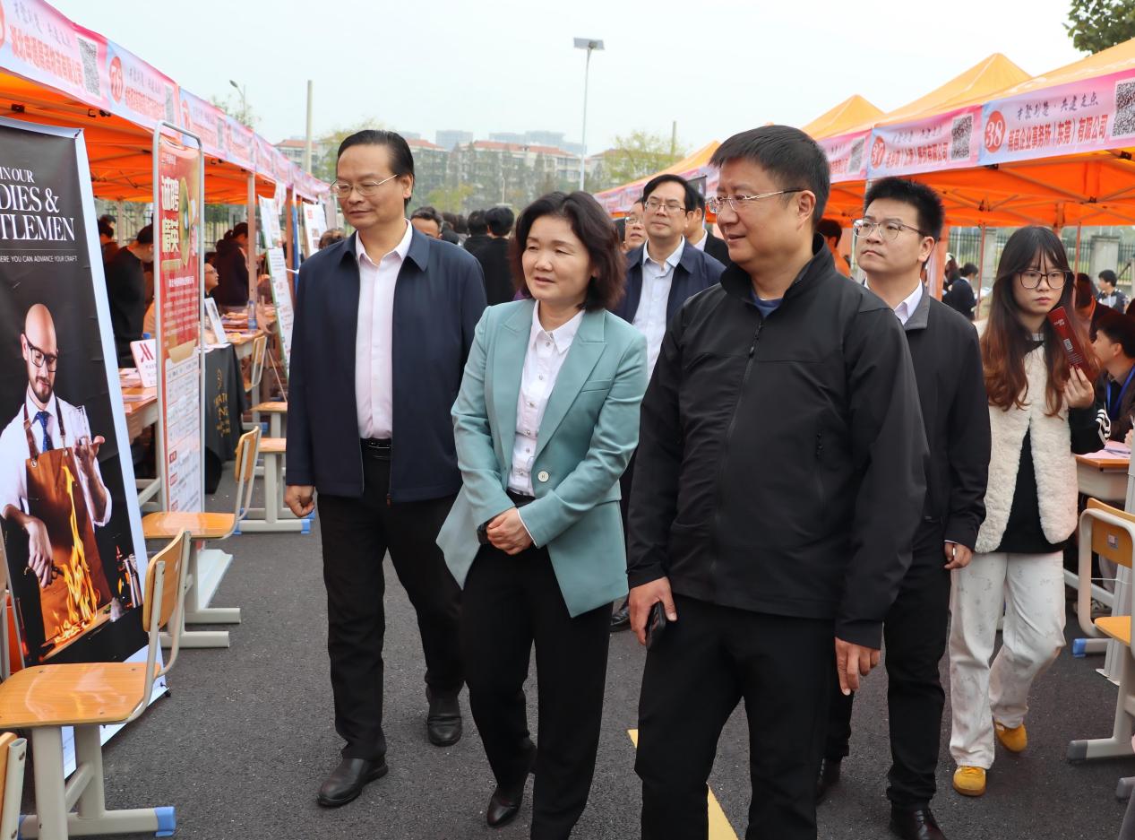 学校党委副书记、校长郭沙,党委委员、副校长梅重以及各相关学院负责人现场与企业交流并调研毕业生需求,孝感市人力资源和社会保障局副局长张晓云、孝感市教育局副局长江泽方、孝感市人才服务局局长陈晓军等政企代表到场指导工作。现场设置“AI智能招聘”“就业指导”“政策咨询”“应征入伍宣传”等特色服务区,专家团队为学生提供简历优化、职业规划、政策解答等精准服务,成为招聘会亮点。