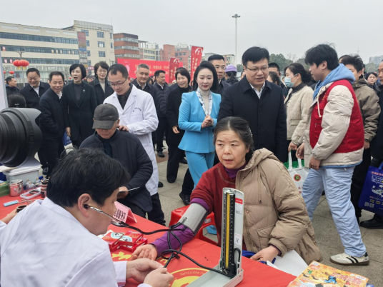(本网讯 胡均超 雷珅 冷玖玲 卢雅雪)3月3日上午,2026年孝感市学雷锋“赶大集”活动在孝感市人民广场举行。我校精诚康复志愿服务队带来了艾灸、推拿、按摩等志愿服务。市领导驻足展台,给予鼓励和肯定。
