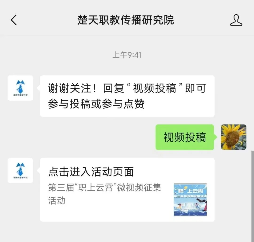 2.回复“视频投稿”并点击链接进入活动主页