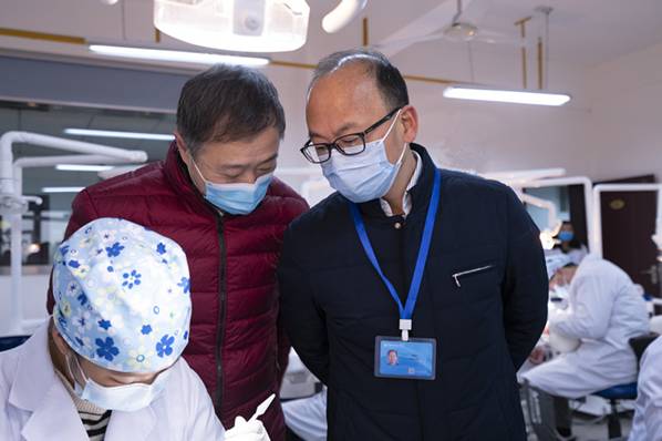 白梦清认真查看了技能比赛现场并实地考察口腔医学实训中心,对竞赛组织和学生展现的专业技能给予了充分肯定,强调技能比武要突出职业素养和实践技能的培养,要与全国大赛对接,要与口腔助理执业医师技能考核对接,不断提升人才培养质量。
