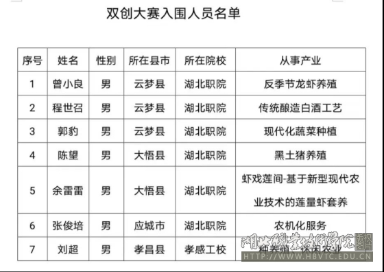(本网通讯员:马江浩、王峰)5月27日,2021-2022年度湖北省农村实用人才创业创新项目大赛在孝感市农业农村局举行。由“一村多”大学生和“一村多”中职生,共14个项目进行了路演。由高等院校创业指导负责人、农业农村等部门专家组成的“超强”评审团,评出7名优秀学员参加省赛。我校财经学院、旅游与酒店管理学院组建多个团队参赛,经过激烈角逐,财经学院曾小良团队排名第一、程世昭团队第二、郭豹团队第三、陈望团队第四,并晋级省赛。