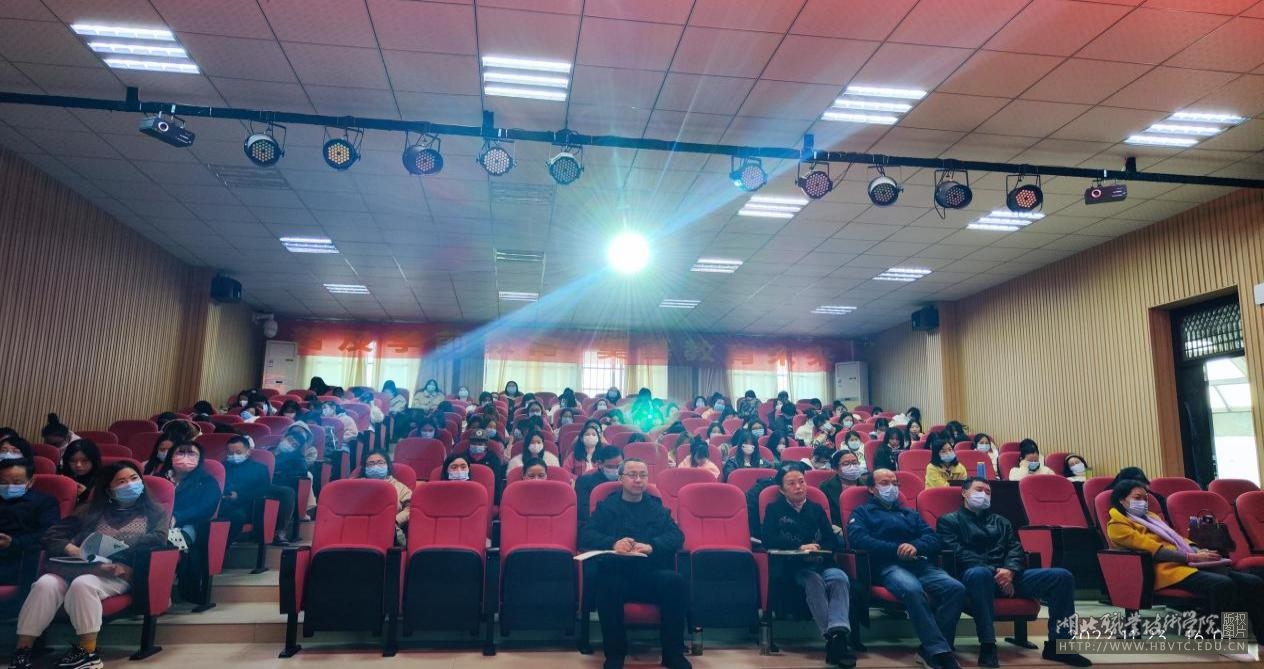 专题讲座在我院报告厅召开,我院班子成员、各职能部门相关人员、全体教师、部分学生共150余人共同聆听了讲座。讲座由副院长周天娇同志主持。