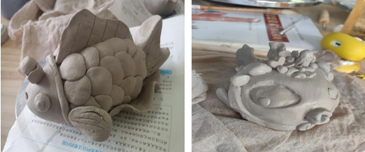教育与艺术学院针对各年级的陶艺教学正有序推进,并已取得初步成果。学前教育专业大三同学们已完成以“鱼”为主题的泥球成型项目创作。大家巧妙运用所学技法,创作出了包括河豚、海豚、鲨鱼在内的各式海洋生物造型,作品生动有趣,富有想象力。下一阶段,同学们将为自己的作品进行上色和施釉,经历窑火的淬炼,最终完成这些充满生命力的艺术创作。婴幼儿托育服务与管理专业的大二同学们已完成了基础陶艺知识的学习,熟悉了各种陶艺工具和设备的安全操作规范,并对拉坯技法的理论知识进行了预先学习,为即将开始的实际上手操作做好了充分准备。