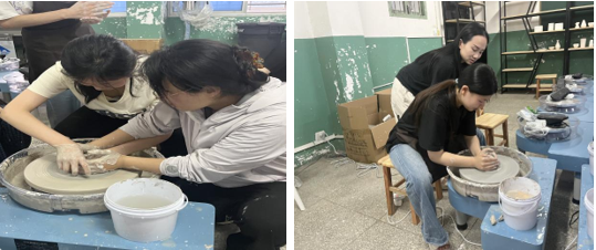 课程涵盖了从基础到进阶的多种陶艺成型与装饰技法,不仅注重陶艺技能的传授,更强调创作思维的培养:拉坯课上,同学们在转动的轮盘上感受泥料在手中的变化,体会成型的最初魅力。