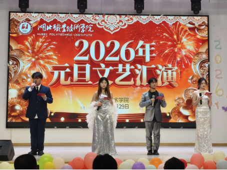 12月29日晚,湖北职业技术学院教育与艺术学院“同心向朝阳”2026年元旦文艺汇演在卧龙校区大礼堂举行,学校相关职能部门、教学院代表、教育与艺术学院师生齐聚一堂,以昂扬向上的精神风貌和丰富多彩的文艺节目,共同迎接2026年的到来。