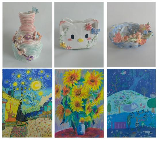 美术作品展体现了学生积极向上,热爱传统文化技艺的良好精神面貌。一剪一世界,一陶一人生。在这场艺术盛宴中,我们看到的不仅是学生们的巧手匠心,更是美育绽放的独特光彩!