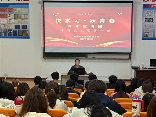 (本网讯 李鹏坤 洪雨溪)为深入学习贯彻习近平总书记关于青年工作的重要论述,引导全院团员青年以青春之力践行时代使命,4月19日,湖北职业技术学院财经与旅游学院在西区文华楼阶梯教室开展了“悦学习•跃青春”青年宣讲团专题学习活动,学院团学骨干代表齐聚一堂参与学习。